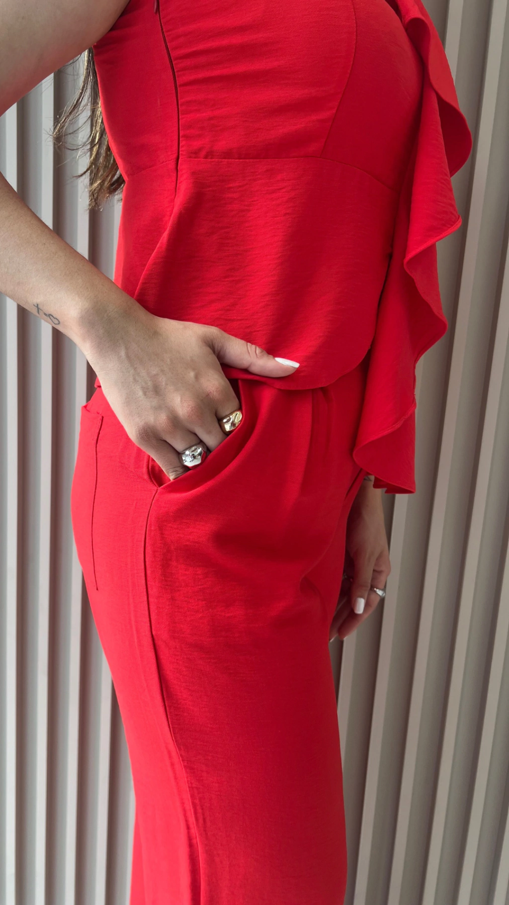 Se você pensou que a vida era feita só de calças jeans, é porque ainda não conheceu a Calça Serena! Composta por 90% viscose e 10% poliamida, essa calça reta vai conquistar seu coração com seu botão diferentão. 😍