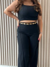 Este elegante conjunto é composto por um cropped com alça não regulável e calça pantalona, ideal para ocasiões especiais. O lastex nas costas proporciona um ajuste confortável, enquanto o zíper na lateral facilita o vestir.